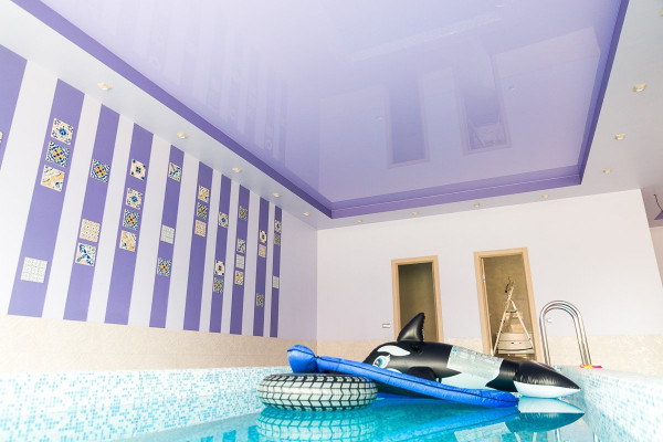 Глянцевый натяжной потолок – вариант, ставший классикой. Он одинаково хорошо смотрится как в жилых пространствах, так и в общественных. Для создания отделки используется поливинилхлоридная пленка в глянцевой фактуре.