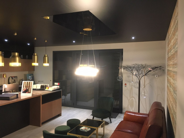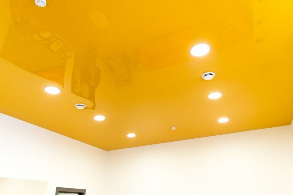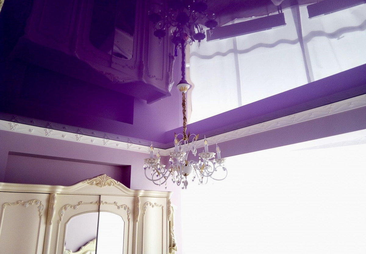 Чтобы интерьер помещения стал более ярким и оригинальным, его можно дополнить цветным натяжным потолком. Такой вариант отделки не потребует много сил и времени, так как установка полотна проводится за считанные часы. Покупатели могут заказать натяжные потолки различных вариантов, отличающихся не только расцветками, но и своей фактурой – можно подобрать как матовые, так и глянцевые модели. Последние будут очень удачно смотреться в помещениях с небольшой площадью, визуально расширяя их.