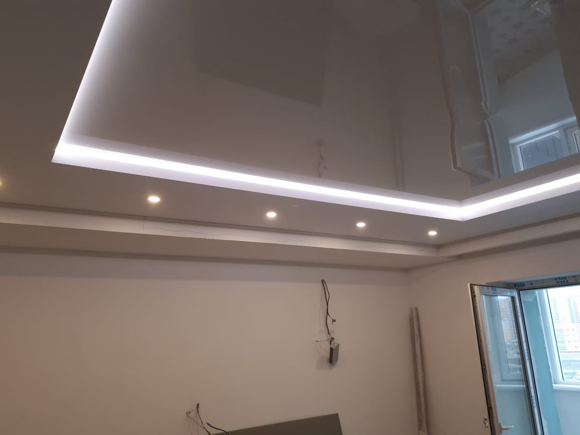 Кроме того, что это красиво, позволяет расставить в интерьере акценты и менять самостоятельно в любой момент менять сценарии освещения, подсветка в натяжном потолке функциональна. Помимо маскировки черновой поверхности гладким натяжным полотном с четкими углами, невидимыми стыками, вы получаете готовые освещение.